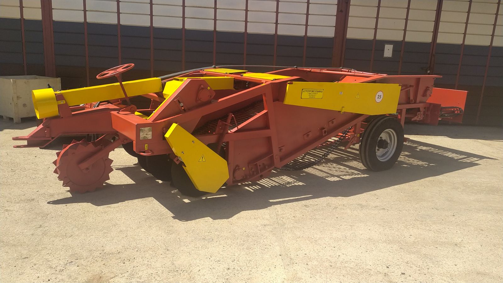 Копатель-валкователь универсальный УКВ-2 на междурядье 90 см., предназначен для одновременного выкапывания клубней картофеля из двух рядков, частичного отделения клубней от почвы и растительных остатков и укладки их в валок в междурядье расположенных рядом неубранных рядков для последующего подбора картофелеуборочным комбайном.