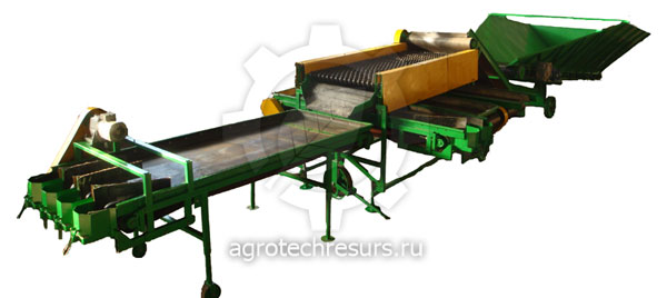 Сортировальная машина для картофеля С6РК15ПБ6 выполняет очистку собранного картофеля от различных примесей. При этом выполняется калибровка клубней на три фракции. Крупные клубни подаются для дальнейшей ручной обработки, мелкая и средняя фракция затаривается в сетку или мешки.
