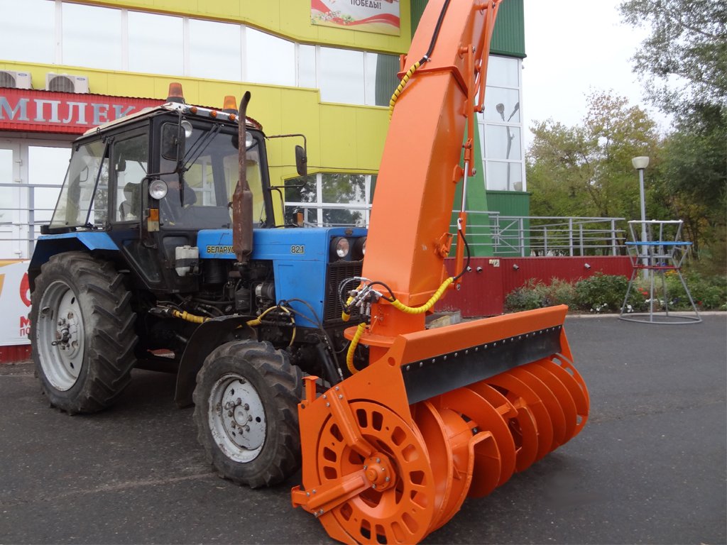 Cнегоуборочная машина Су 2.1-01 "ЛАВИНА" - это комбинация фрезы-ротора и фрезы-шнека. Редуктор оборудования - планетарный, он передает крутящий момент на выбросную фрезу-ротор и боковую фрезу-шнек и позволяет вращать их с разной скоростью - 500 и 170 об/мин. соответственно. Фреза-шнек имеет собственный предохранительный механизм. Патрубок выброса снега имеет три фиксированных положения - наклон 30º, 45º, 60º, гидромотор с предохранителями позволяет вращать патрубок выброса снега на 200º. Монтаж/демонтаж патрубка занимает 5 минут. Козырек выбросного патрубка управляется гидроцилиндром и обеспечивает моментальное изменение угла выброса снега, что является важнейшим качеством снегоочистителя при работе в черте населенных пунктов. Высокопроизводительные фрезы навесной снегоуборочной машины Су 2.1-01 "ЛАВИНА" способны справиться со снежным валом любой плотности!