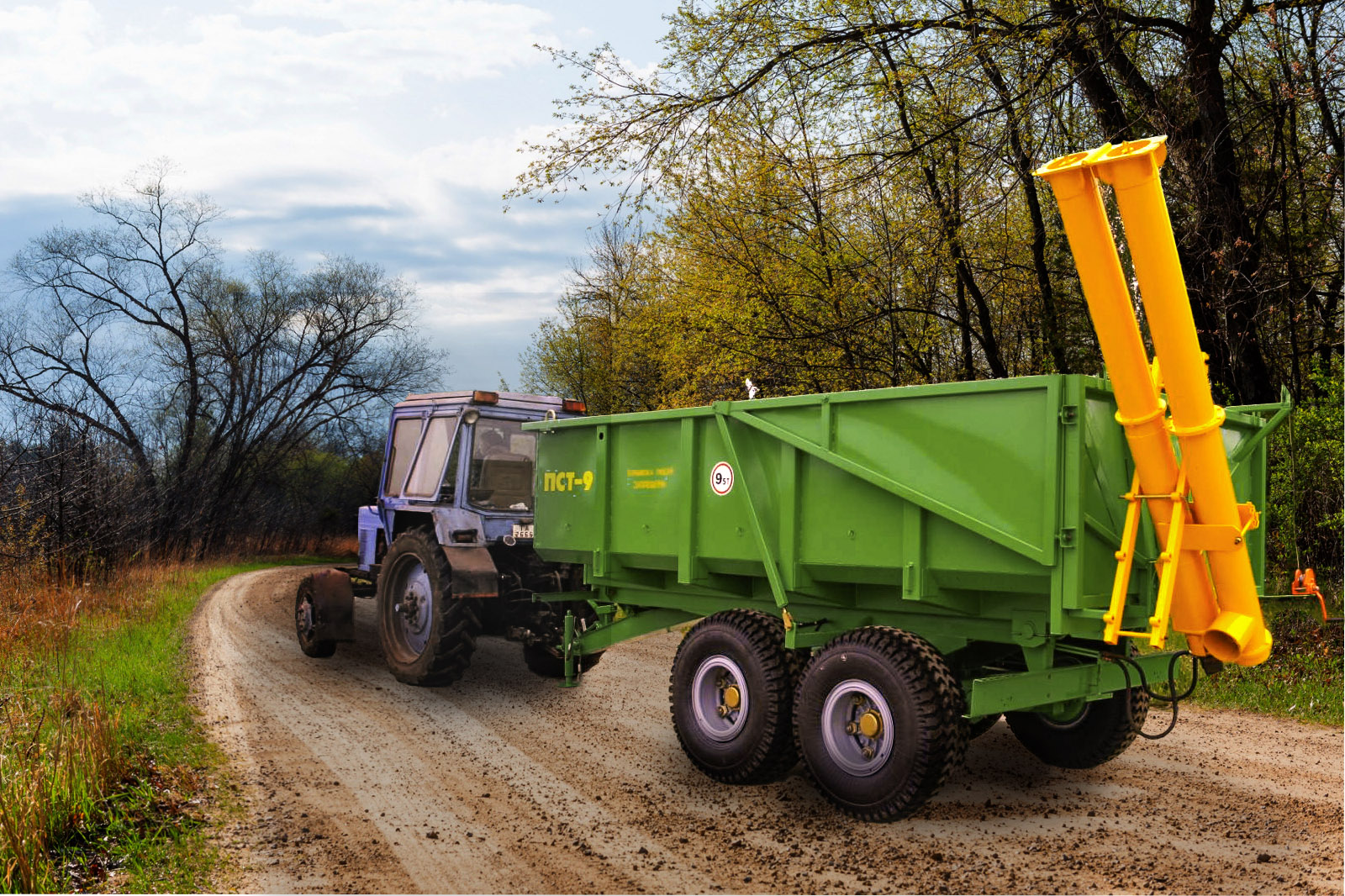 Приспособление, монтируемое на самосвальные полуприцепы ПСТ-9 и ПСТ-12, предназначено для механизации засыпки зерна в сеялки из полуприцепа на полях, а также для перегрузки зерна в другие емкости. Приспособление шнекового типа привод от автономного гидромотора